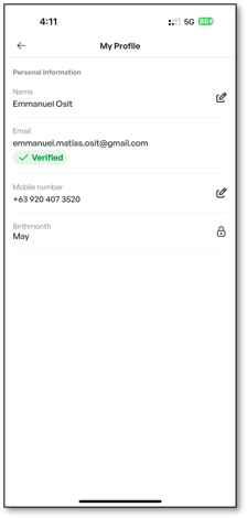 How to Change Name, Email Address, and Mobile Number Make sure to login to your account Click Account button Click My Profile Open Personal Information Input new First name and Last Name Input new mobile number starting with “9”