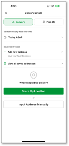 How to Setup Delivery Address Via Manual Address Click Add delivery address button Click Input Address Manually button Enter your address by typing in the input box Enter address detail sand or delivery instructions Related articles How to Contact the Store