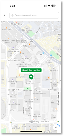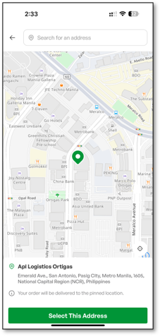 How to Setup Delivery Address Via Pin Drop Click Add delivery address button Click Add new address button Drag the pin drop and click Select this location button Confirm the address by clicking Select this address button