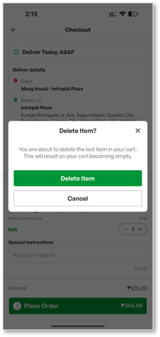 How to Update or Delete Items in the Cart? Click floating cart icon To edit quantity: Click the “Minus” or “Plus”button To delete, slide the item to the right Confirm by clicking Delete item button Go back to Menu to add items once again Related articles How Can I Follow Up or File a Complaint About a Mang Inasal Store?