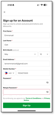 How Existing Users can Nominate New Password Once Migrated to Falcon Via REGISTRATION Open the new App Then click “SignUp” Sign Up using the old registered email address A verification link will be sent to the registered and migrated email address Click “Create New Password” button A successful prompt will show Related articles How Existing Users can Nominate New Password Once Migrated to Falcon Via LOGIN How Existing Users can Nominate New Password Once Migrated to Falcon Can I Make Special Requests For My Order? Data Privacy Concerns How To Cancel Your Order With Mang Inasal